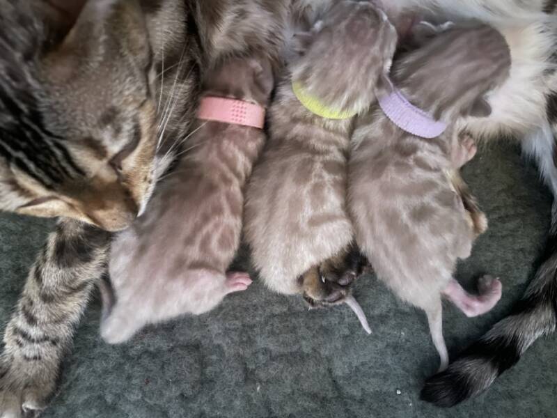 Op 10 augustus 2023 is ons eerste nestje kittens geboren, drie prachtige en gezonde kittens! Tijd voor beschuit met muisjes!